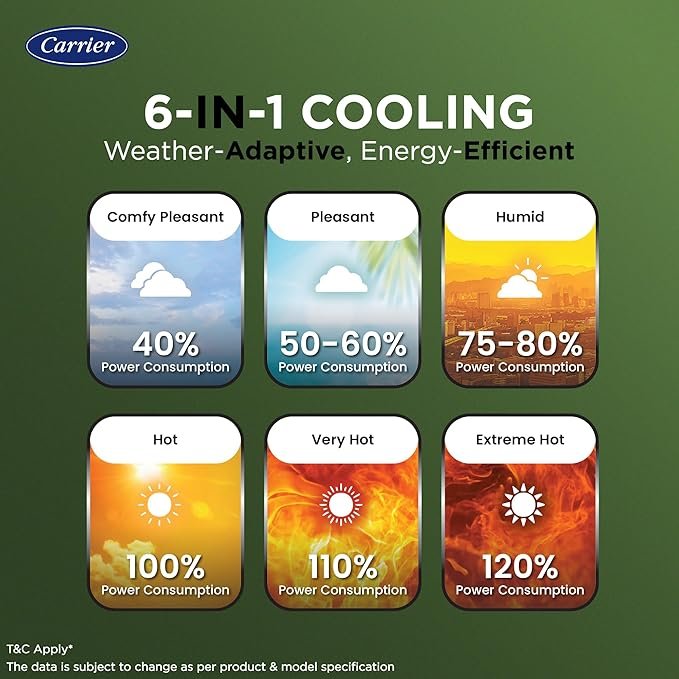BrandCarrierCapacity1.5 TonsCooling Power4800 KilowattsSpecial FeatureAir Purification Filter, Auto Clean, Fast Cooling, Inverter Compressor, WiFi EnabledProduct Dimensions27D x 94W x 54H Centimeters