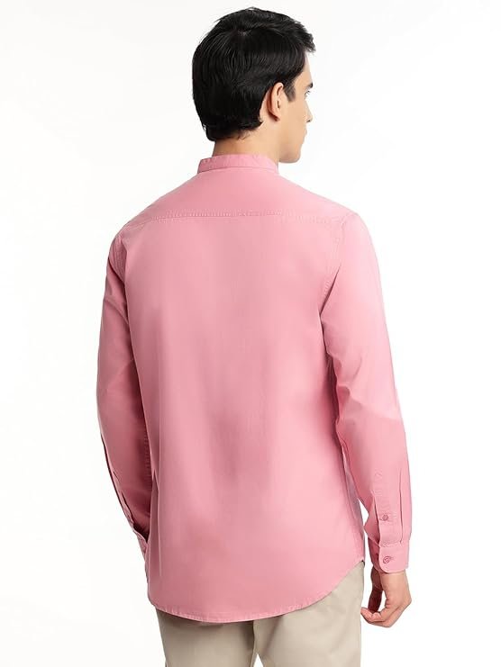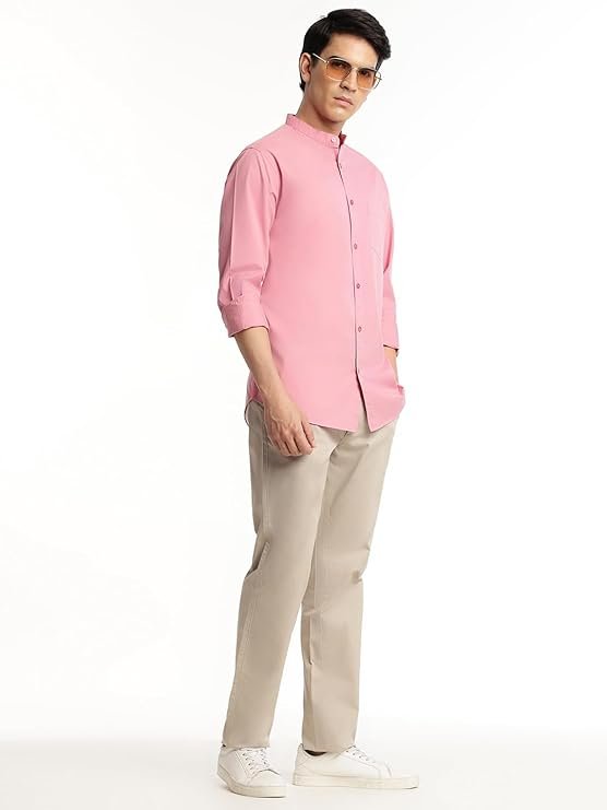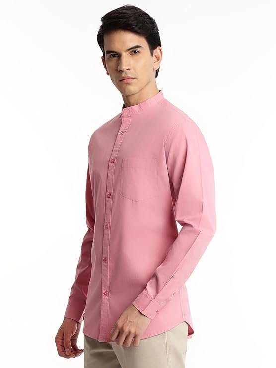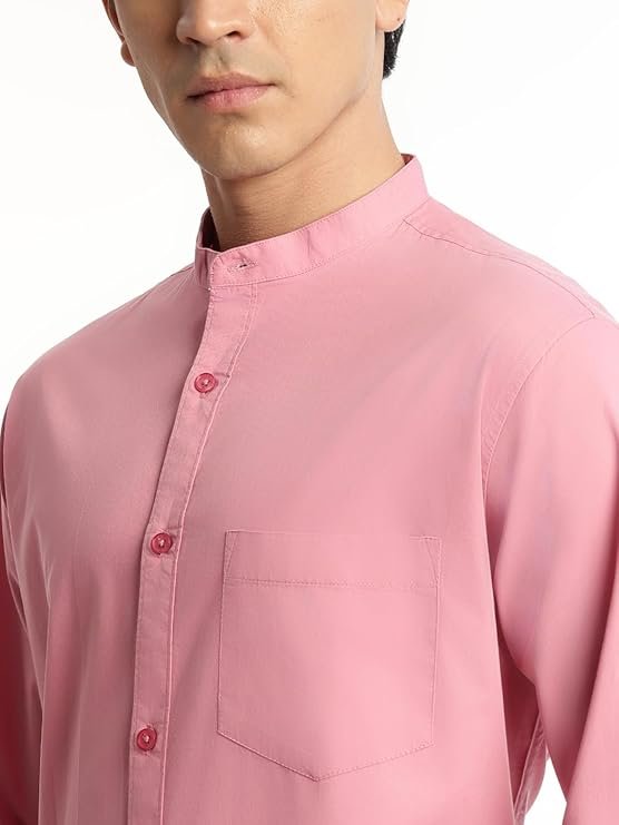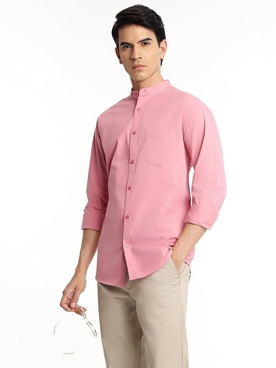 Casual Shirts for Men with Mandarin Collar, Full Sleeves and Chest Pocket