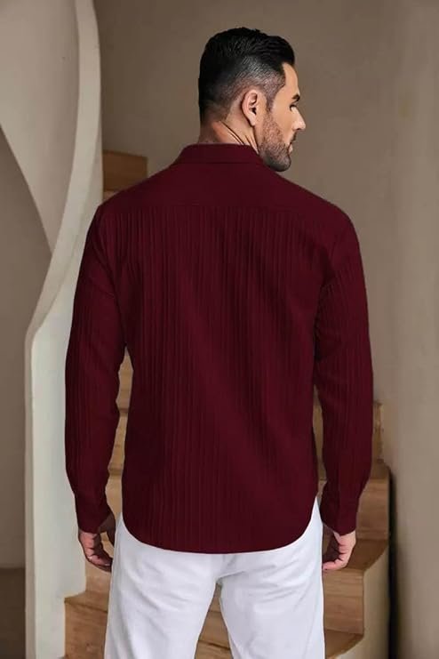 【Unique Design】Mens casual shirts feature long sleeve,spread collar, solid color,slight vertical ribbing,relaxed fit,simple and fashion