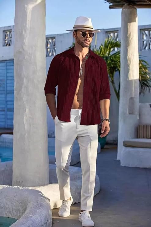 【Occasions】Mens untucked shirts is a great choice for beach, wedding, vacation, cruises, tropical aloha theme, party, yoga, work or daily casual wear.Perfect great for all seasons, Just enjoy your vacation.