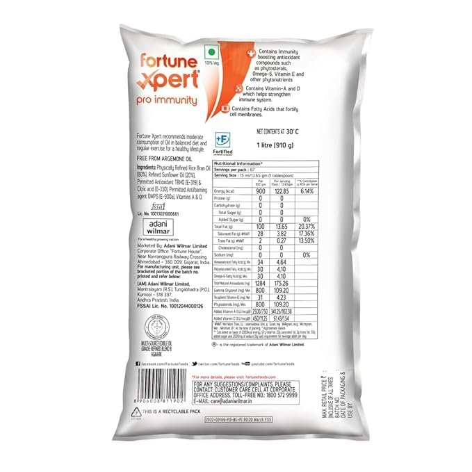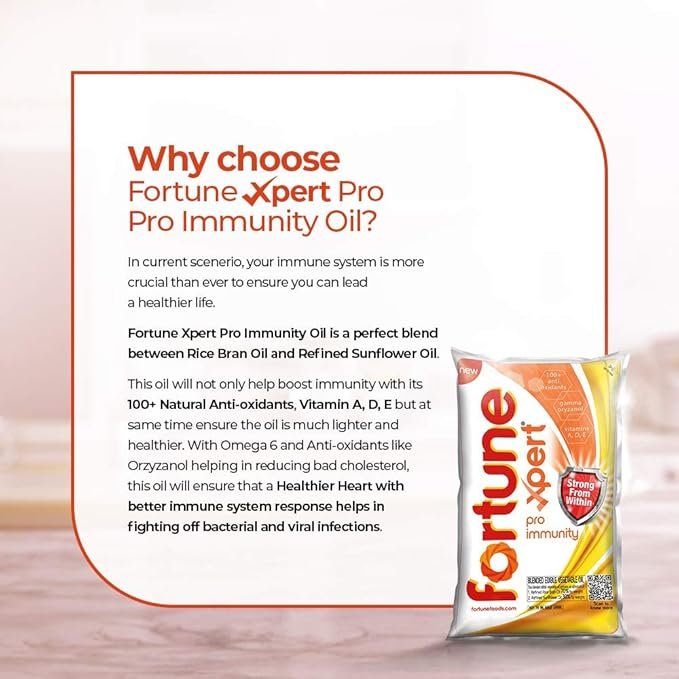 Fortune Xpert Pro Immunity Oil | Blend of Rice Bran Oil & Refined Sunflower Oil |Oil to Boost Immunity |Healthy Edible Oil 1L Pouch