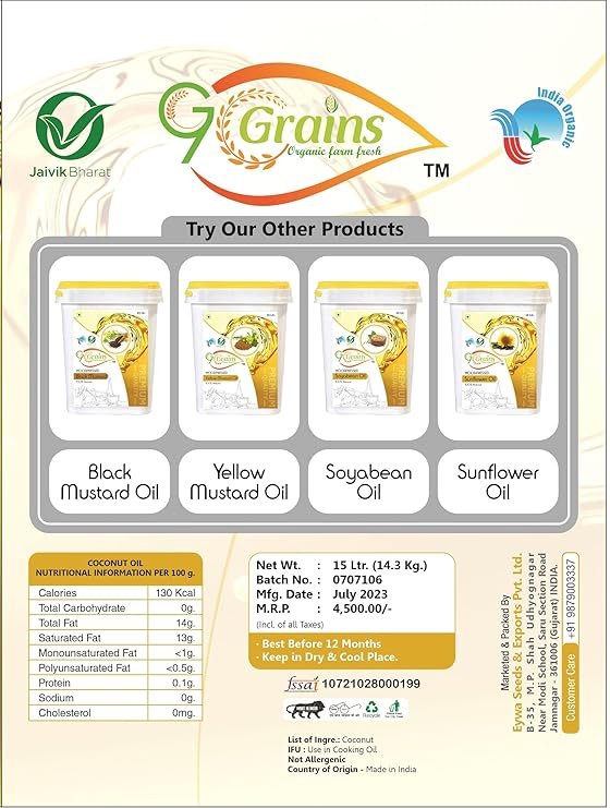 G7 GRAINS Organic Coconut Oil (15 Liter) Cold Pressed/Wood Pressed Oil | Nariyali Ka Tel/Coconut Kachi Ghani Oil