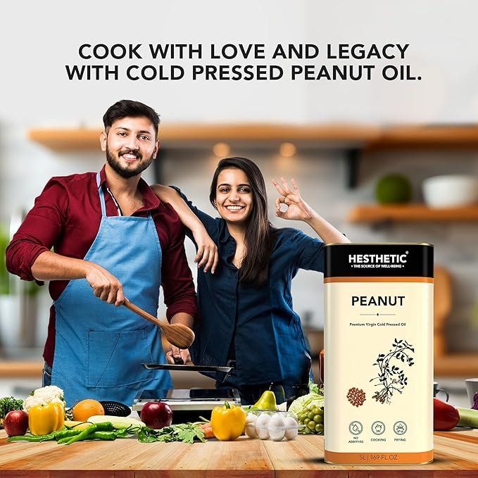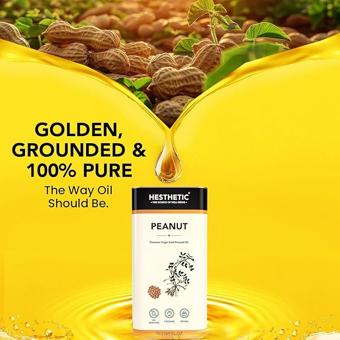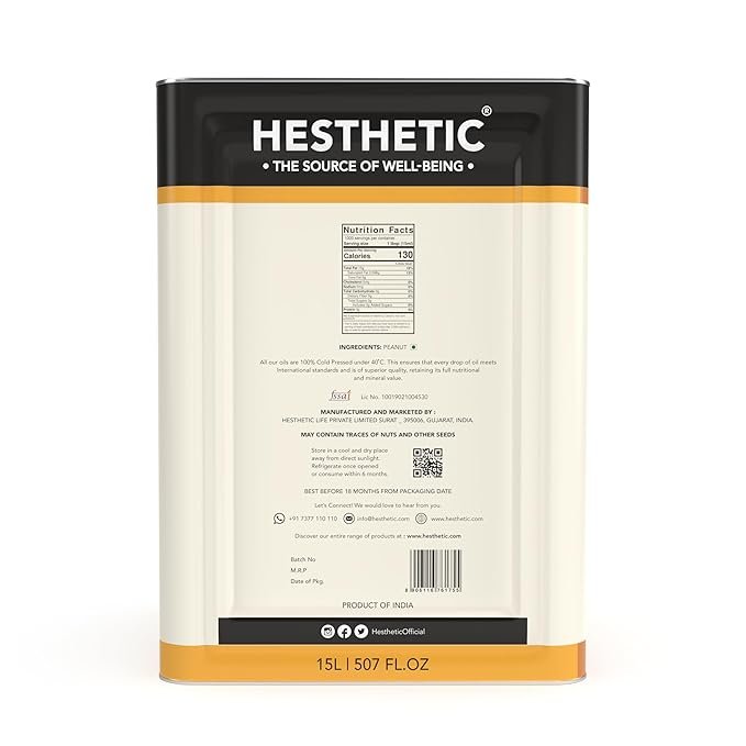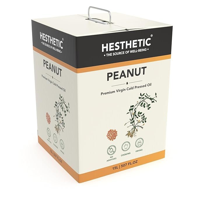 HESTHETIC Premium Edible Cold Pressed Peanut Oil, 15L, 100% Pure and Natural Food Grade Groundnut Virgin Oil, Rich in Healthy Fats, Ideal for Cooking, Frying, and Salad Dressing