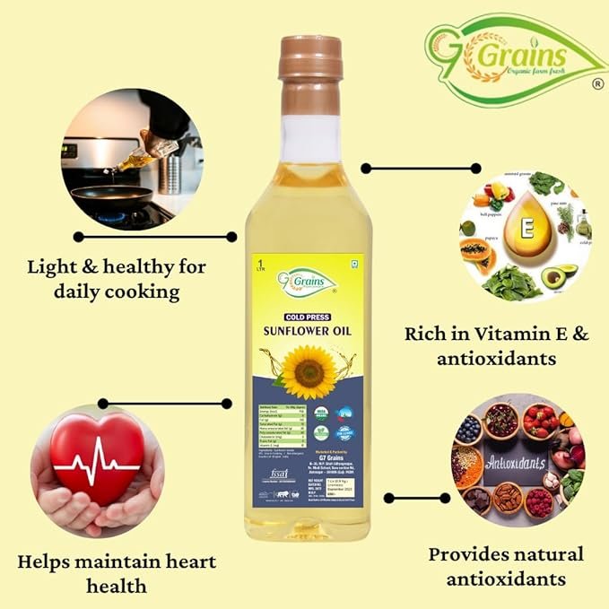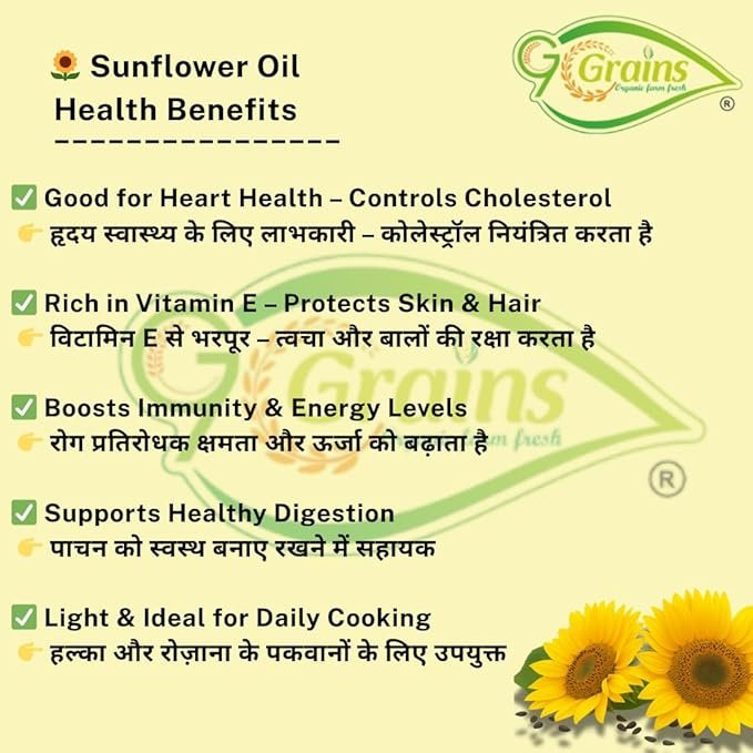 ✅ 100% Pure & Natural – Cold pressed/wood pressed oil from premium sunflower seeds