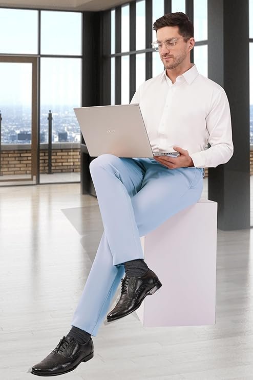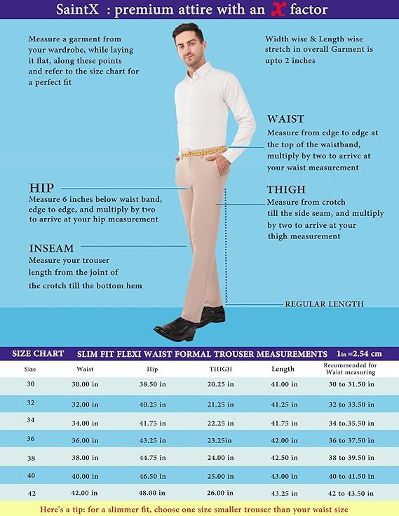 SaintX Men’s Premium 4-Way Comfort Stretch Formal Trousers | Smart Moisture Wicking Wrinkle Free Fabric | Smarter Techno Flex Expandable Waistband | Stylish Slim Fit | Daily Office Wear