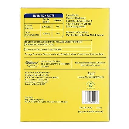 Esay to carry and use – Contains Non- Calorie sweetner sachets which is convenient to use