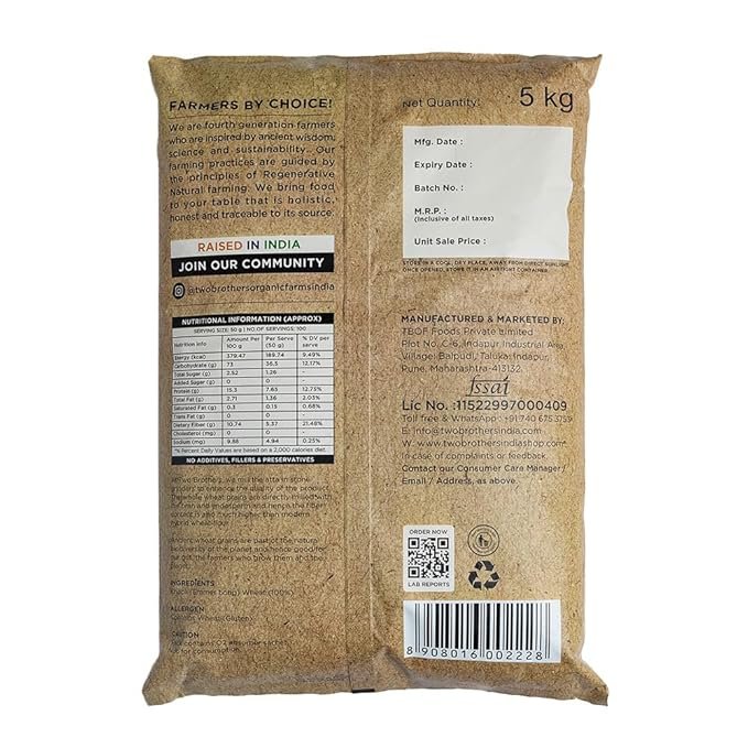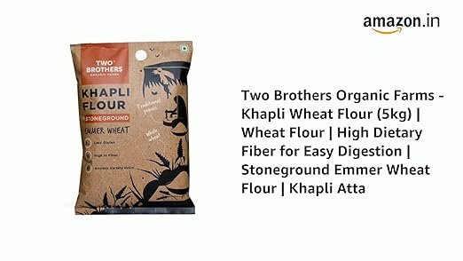 Two Brothers Organic Farms – Khapli Wheat Flour (5kg) | High Dietary Fiber for Easy Digestion | Stoneground Emmer Wheat Atta | Khapli Atta