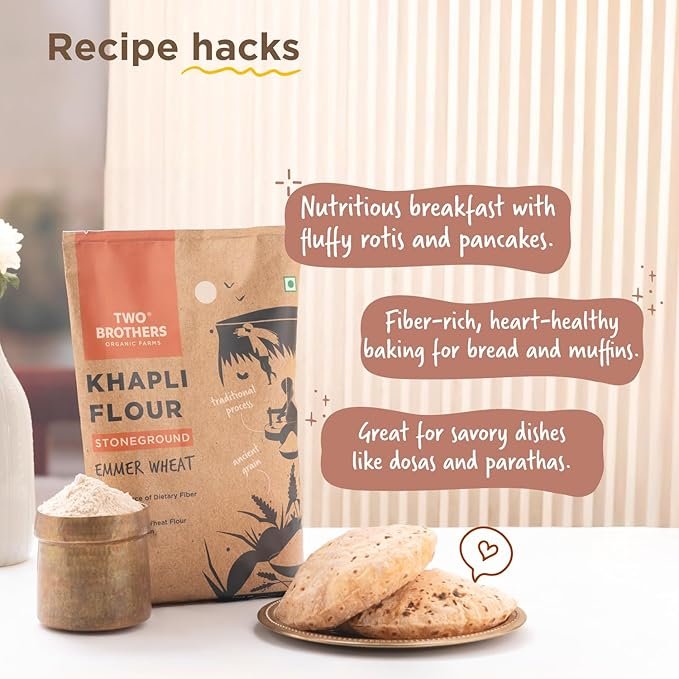 ANCIENT GRAIN, MODERN WELLNESS: Made from unpolished, heirloom Khapli (Emmer long) wheat, this atta is high in dietary fiber and protein—keeping you full, aiding digestion, and supporting overall wellness with every meal.
