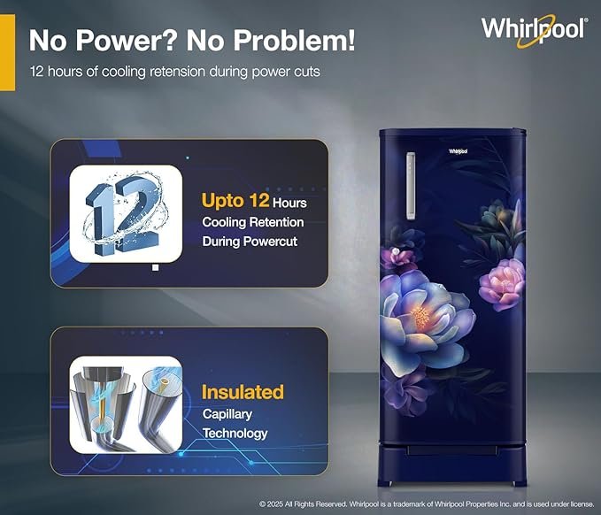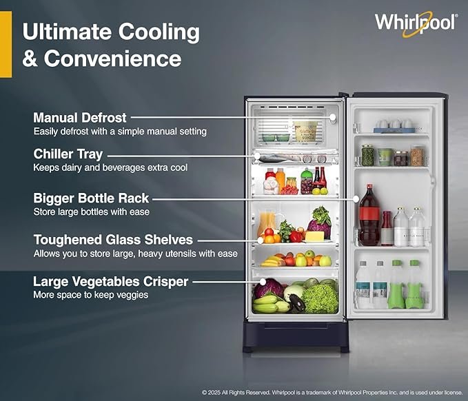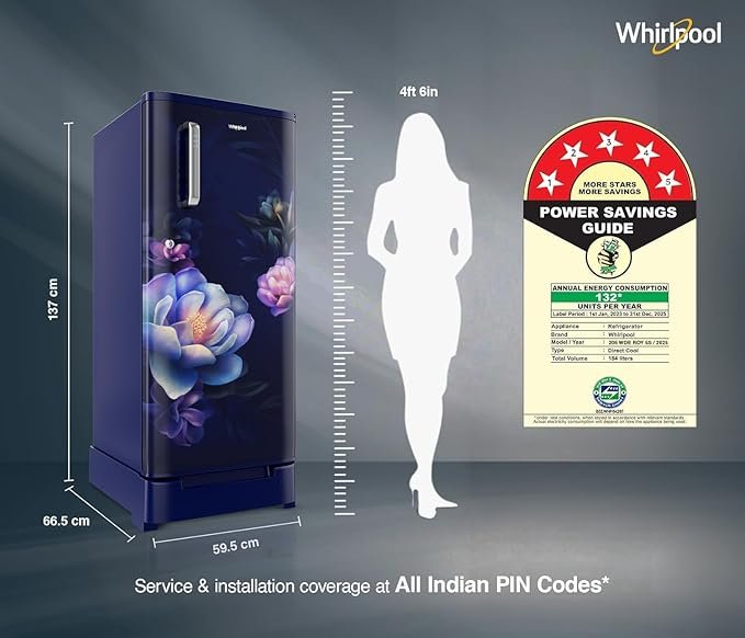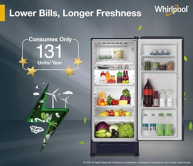 Whirlpool 184 L 5 Star Direct-Cool Single Door Refrigerator with Intellisense Inverter Compressor (205 WDE ROY 5S INV SAPPHIRE SERENA -Z1)